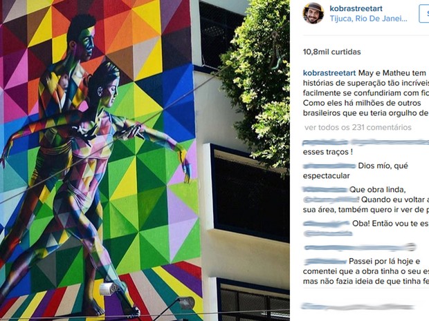 Postagem da nova pintura do muralista Eduardo Kobra em uma rede social já tem mais de 10 mil curtidas (Foto: Reprodução)